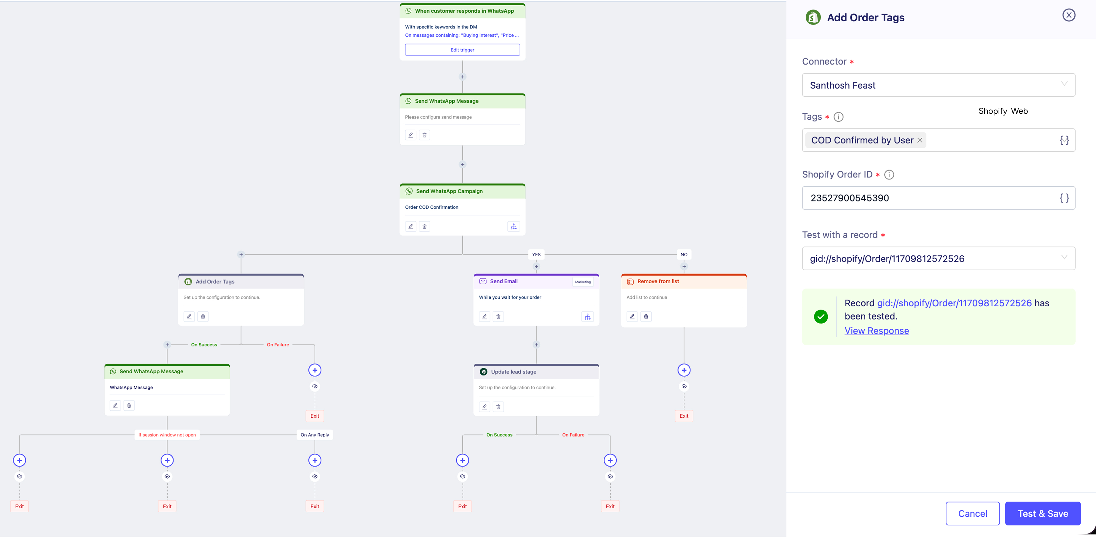 A common misconception is that a WhatsApp chatbot only lives on WhatsApp. ZEPIC connects channels. A flow can start on WhatsApp and branch into email or Instagram based on customer behavior. It also connects systems: Shopify, HubSpot, Zendesk, and any tool that supports webhooks.